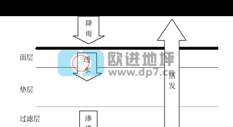 透水性鋪裝包括透水性瀝青混凝土鋪裝、透水性水泥混凝土鋪裝及透水性地磚等;我國傳統的用于園林鋪地的鵝卵石地面鋪裝也是透水性鋪裝的一種。透水性鋪裝的透水一般方式就是地面上的降水可以通過面層與其鋪裝下墊層相通的滲水路徑滲入下部土壤;另一種透水方式是依靠地磚接縫或地磚之間預留空隙來實現透水目的[3]。