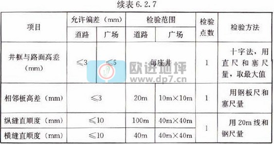 6.2.7透水水泥混凝土路面面層允許偏差應符合表6.2.7的規定。