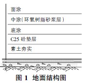 工程項目的地面結(jié)構(gòu)為砼基層、底涂、環(huán)氧砂漿和罩面,如圖1 所示。
