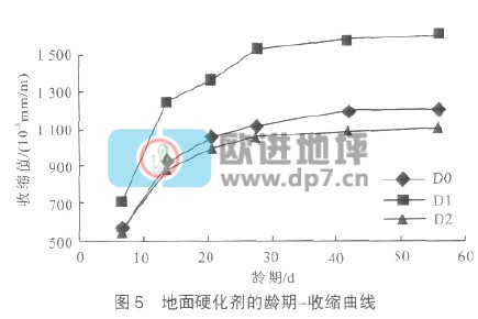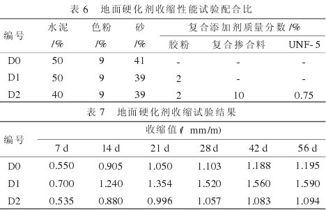(4)復合添加劑的使用,可降低地面硬化劑的收縮,56 d收縮值可降低8.5%。